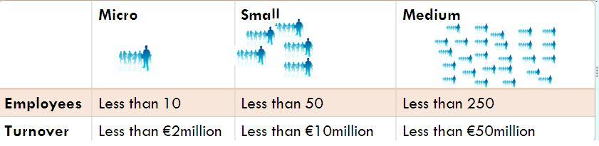 - A small enterprise can have no more than 50 employees, or no more than a €10million turnover or balance sheet figure.